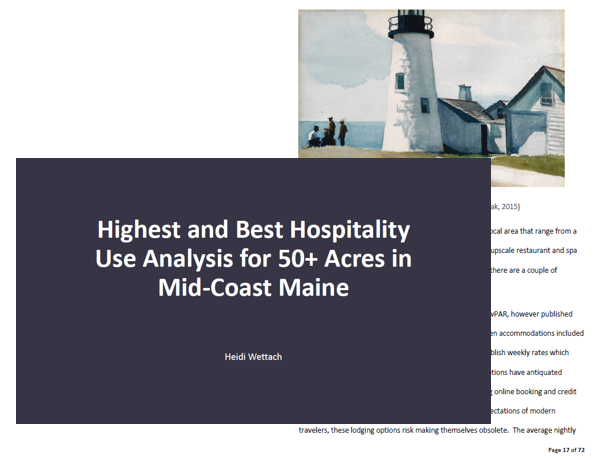 Capstone Project: Highest and Best Hospitality Use Analysis for 50+ Acres in Mid-Coast Maine